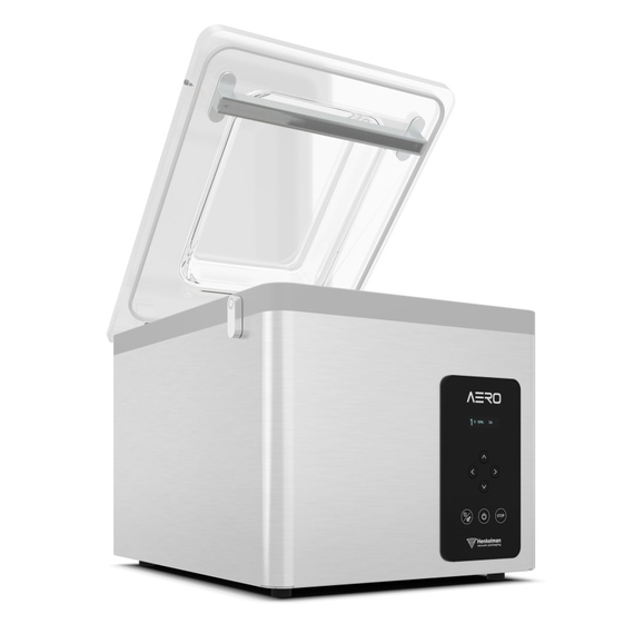 Henkelman Aero 35 Vakuumverpackungsmaschine Hochmoderne, innovative, robuste Maschine mit schickem Design. Vakuumpumpe 8 m³Einfache Steuerschnittstelle. 3 einstellbare Programme. Präzise Vakuumeinstellungen mit Sensordruckregelung. Standard-Softair. Schnellerer Verpackungszyklus. Umfassendes Wartungsmenü. Service Erinnerung. Öl Reinigungsprogramm. 3 Jahre Garantie. Standardausstattung Soft-airSensorsteuerungDoppel schweissung Optionen DampfsensorTrennschweissungZweite Schweissleiste 42xl/42xl+ Zubehör Schräge einlegeplatteExterner vakuumadapterWagen mit regalenService-kit Henkelman Aero 35 Vakuumverpackungsmaschine Busch-Pumpe Alle Henkelman-Maschinen sind mit einer Busch-Vakuumpumpe ausgestattet. 3 Jahre Garantie Henkelman bietet 3 Jahre Garantie auf Ersatzteile. Aero-Modelle Alle Aero-Modelle sind serienmässig mit Soft-air, Sensorsteuerung und Doppel schweissung ausgestattet. CE- und ETL-zertifiziert Henkelman-Maschinen entsprechen den ETL-, UL-, CSA-, NSF- und CE-Normen. Soft Air Mit Soft Air wird die Luft nach und nach sanft in die Kammer zurückgeführt. Dieser schrittweise Prozess basiert auf der voreingestellten Zeit. In einer kontrollierten Weise umhüllt der Vakuumbeutel das Produkt. Für optimalen Schutz von Produkt und Vakuumbeutel. Soft Air eignet sich für Lebensmittel und Non-Food-Produkte. Insbesondere T-Bone Steaks, Lammkarree, Spareribs, Schrauben, Bolzen, elektronische Bauteile und Printing Circuit Boards (PCBs). Vakuumieren in Gastronormbehältern Mit diesem Zubehör kann in speziellen Gastronormbehältern für Lebensmittelverpackungen außerhalb der Maschine vakumiert werden. Abhängig davon, ob die Maschine Zeit oder Sensorsteuerung hat, wird der Vakuumwert in Sekunden oder % eingestellt. Es ist sehr wichtig zuerst zu prüfen, ob der Behälter für das Vakumieren geeignet ist. Dampfsensor Wasserhaltige und flüssige Produkte wie Suppen und Saucen erreichen während des Vakuumierzyklus’ schnell den Siedepunkt. Senkt man den Kammerdruck unter den normalen Luftdruck ab, fangen Flüssigkeiten bereits bei Zimmertemperatur an zu sieden und kalte Produkte werden gekocht. Die Sensorfunktion erkennt unmittelbar und zuverlässig den aus dem flüssigen Produkt entweichenden Dampf. Signalisiert der Sensor, dass der Siedepunkt erreicht ist, stoppt die Maschine mit dem Absaugen der Luft und beginnt mit der Versiegelung des Beutels. Verwenden Sie für eine perfekte Produktplatzierung eine Schrägeinlage. Nutzen Sie diese Option, um Schäden an Ihrer Vakuumverpackungsmaschine und dem flüssigen Produkt zu vermeiden. Sensorsteuerung Mit der Sensorsteuerung ausgestattete Vakuumverpackungsmaschinen berechnen, wann der voreingestellte Prozentsatz erreicht wurde. Mit anderen Worten, das gewünschte Endvakuum wird unabhängig vom Volumen immer erreicht. Das ist der Hauptvorteil von Henkelmans Option Sensorsteuerung. Sehr praktisch zum Vakuumverpacken verschiedener Mengen und Arten von Produkten.