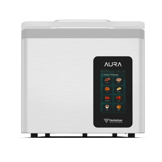 Henkelman Aura 35+ Vakuumierer Elegantes Tischmodell mit höchstem Komfort für den Benutzer und einer endlosen Bandbreite vorprogrammierter Vakuumprogramme. Erzeugen Sie mit der fortschrittlichen Software Aura mühelos perfekt vakuumierte Produkte. Wählen Sie einfach auf dem H-Touch-Bedienfeld von Henkelman ein Produkt oder eine Abbildung aus und Aura schaltet die entsprechenden Funktionalitäten an oder aus. Intelligentes Vakuumieren, bei uns heißt das I-Vac. Mit Dutzenden von vordefinierten Endprodukten sorgt Aura dafür, dass jede bedienende Person jedes Produkt perfekt vakuumieren kann. Funktionalitäten wie Flüssigkeitskontrolle, Marinieren und Stufenvakuum sind in Aura standardmäßig vollständig integriert. Soft airErmöglicht optimales Vakuumieren von scharfkantigen oder weichen Produkten, ohne den Vakuumbeutel oder das Produkt zu beschädigen. SensorsteuerungErmittelt das Vakuum und stoppt den Prozess automatisch, wenn der voreingestellte Vakuumprozentsatz erreicht ist. Begasung (MAP)Verlängert die Haltbarkeit und schützt empfindliche Produkte durch Zugabe von Konservierungsgas vor Verformung und Verfärbung. Funktion für rotes FleischKurzes Lufteinlassen stoppt das Entgasen von Fleisch während der Siegelung. Das sorgt für eine längere Haltbarkeit und vermeidet Luftblasen und Feuchtigkeit in der Verpackung. Warum Begasung (MAP)?Unter MAP (Modified Atmospheric Packaging) versteht man die Zugabe von Konservierungsgas während des Vakuumierens von empfindlichen Produkten. Denken Sie beispielsweise an geschnittenen Salat, Chips , aber auch Bake-off-Produkte oder gegarten Fisch. Die Zugabe von Gas verlängert nicht nur die Haltbarkeit und schützt diese Produkte, sondern verhindert auch Verfärbungen und Verformungen. Nach dem Vakuumieren, aber vor dem Versiegeln wird Konservierungsgas in den Vakuumbeutel geblasen. In der Regel handelt es sich um ein Gemisch aus Stickstoff (N2) oder Argon (Ar) und Kohlendioxid (CO2) und in einigen Fällen zusätzlich um Sauerstoff (O2). Für Gasgemische mit mehr als 20 % Sauerstoff ist eine spezielle Sauerstoffpumpe erforderlich. I-Vac: Intelligentes Vakuumieren – mit hochmoderner SoftwareWas auch immer Sie vakuumieren möchten: Aura verfügt standardmäßig über ein breites Spektrum an vordefinierten Vakuumprogrammen für das Herstellen von optimalen und professionell verpackten Produkten. Die innovative Software sorgt dafür, dass an der Maschine die richtigen Funktionen ein- oder ausgeschaltet werden. Zusätzlich können Sie nach Belieben Vakuumprogramme hinzufügen oder optimieren. Auf diese Weise passt sich Aura nahtlos Ihren Verpackungswünschen an. Bei jedem Zyklus aufs Neue. Das ist intelligentes Vakuumieren. Das Henkelman-Bedienfeld H-TouchAura ist das erste Produkt im Sortiment mit dem exklusiven, zukunftsweisenden farbigen Bedienfeld H-Touch von Henkelman. So wird die Bedienung der Maschine noch einfacher. Der moderne Touchscreen mit Grafiken macht das Navigieren zwischen den Optionen so simpel, dass jede bedienende Person problemlos das gewünschte Programm findet. Und dann heißt es nur noch „Click & Go“. Denn eins ist sicher: Mit dieser innovativen Benutzeroberfläche ist das Verpacken so unkompliziert wie noch nie. Elegantes Dutch DesignDiese Vakuumiermaschine ist nicht nur unglaublich benutzerfreundlich, sondern auch ein echter Hingucker. Ihre schönen abgerundeten Ecken und das große integrierte H-Touch-Bedienfeld machen sich in offenen Küchen oder Geschäften gut. Dank des nahtlosen Übergangs zwischen (Innen-)Kammer und Ummantelung lässt sich dieses Modell leicht und unter Wahrung aller Hygienestandards sauber halten. Dieses umfassendste Tischmodell von Henkelman ist außerdem standardmäßig für den eventuellen (späteren) Anschluss an ein Begasungssystem oder einen Etikettendrucker ausgelegt. Eigenschaften • Serienmäßig mit 1 Schweißleiste (vorne)• Serienmäßig mit Doppelschweißung (zwei Schweißdrähte)• Optitional ohne Aufpreis: Trennschweißung/Breitschweißung• Programm für Pumpenwartung und Pumpenreinigung• Serienmäßig mit Flüssigkeitskontrolle• I-Vac: Intelligentes Vakuumieren - mit hochmoderner Software - einfache Produktauswahl - häufig genutzte Funktionen und Programme schnell zugänglich• Serienmäßig mit Soft Air• Edelstahlgehäuse und transparenter Deckel• Wird mit 2 Einlegeplatttten geliefert, für schnelleren Zyklus und optitimale Produktposititionierung Optionen • Begasung (MAP) Zubehör • Schrägeinlegeplatte (zum Verpacken von Flüssigkeiten)• Thermo-Etikettendrucker• Externer Adapter• Servicesatz für Standardwartung• Universal-Rollwagen mit Ablagen