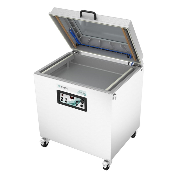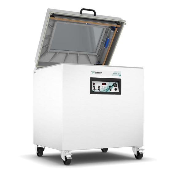 Robustes Industriestandmodell mit Aluminiumkammer und Deckel Alle Henkelman Falcon-Modelle sind mit einer Aluminiumvakuumkammer und einem Aluminiumdeckel ausgestattet. Darüber hinaus verfügt der Deckel über ein Sichtscheibe zur Überwachung des Verpackungszyklus. Die robuste Falcon 80 Vakuumverpackungsmaschine mit Aluminiumkammer und –deckel ist standardmäßig mit zwei Schweissleisten, einer Busch Vakuumpumpe und einer Digitalen Steuerung mit 10 Vorwahlprogramme ausgestattet. Dieses Standmodell entspricht den CE-Normen. Standard mit 2 Schweissleisten: 1 x 760 mm (vor), 1x 510 mm (rechts) Optional ohne Aufpreis: 2 Schweissleisten vor-hinten oder links-rechts Standard mit Doppelschweissung (2 Drähte). Optional (ohne Aufpreis): Trenn-/Breitschweissung Silikonhalterungen sind für Reinigungs- und Wartungszwecke einfach abnehmbar Pumpenkapazität: 100 m3/h Busch Vakuumpumpe Pumpenkonditionierungsprogramm für Wartung und Reinigung Maschinenzyklus: 15-40 Sek Standard Digitale Steuerung mit Zeitsteuerung und 10 Vorwahlprogramme Rostfreies Edelstahlchassis und Aluminiumkammer und –deckel mit Sichtfenster Kommt mit Einlegeplatten für einen schnelleren Verarbeitungszyklus und besseren ProduktplatzierungKammerabmessungen (L x B x H): 510 x 760 x 235 mmMaschinenabmessungen (L x B x H): 820 x 900 x 1050 mmSchweissleisten (L): 1 x 760 (vor), 1x 510 mm (rechts)Pumpenkapazität: 100 m³/hMachinenzyklus: 15-40 sec OPTIONEN 1-2 Trennschweissung Bi-aktiv-Schweissung 3 Schweissleisten (links-vor-rechts) Soft-Air für optimalen Schutz von Produkt und Vakuumbeutel Sensorsteuerung/ACS-Steuerung Dampfsensor Begasung ZUBEHÖR (OPTIONAL GEGEN AUFPREIS) Zebra ZD410 Thermo-Etikettendrucker (nur für Maschinen mit ACS-Steuerung verfügbar) Schrägeinlage (zum Vakuum verpacken von Flüssigkeiten und Pulvern) Servicesatz für Standardwartung Henkelman Falcon 80 Vakuumverpackungsmaschine Busch-Pumpe Alle Henkelman-Maschinen sind mit einer Busch-Vakuumpumpe ausgestattet. 3 Jahre Garantie Henkelman bietet 3 Jahre Garantie auf Ersatzteile. Falcon-Modelle Alle Henkelman Falcon-Modelle sind mit einer Aluminiumvakuumkammer und einem Aluminiumdeckel ausgestattet. CE- und ETL-zertifiziert Henkelman-Maschinen entsprechen den ETL-, UL-, CSA-, NSF- und CE-Normen. Hochleistungsfähige Schweisbalken Henkelman bietet Lösungen für die Nahrungsmittelindustrie mit hohen Leistungsanforderungen. Diese Lösungen ermöglicht es bis zu 20 Stunden am Tag in Wechselschichten zu arbeiten mit zuverlässige Maschinen höchster Qualität. Zum Beispiel die intelligente Konstruktion und strapazierfähige Materialen dieser hochleistungsfähigen Schweissbalken sichern optimale Vakuumverpackungsprozesse unter extremsten Bedingungen. Doppelten Schweisskapazität Mit der doppelten Schweisskapazität durch einen extra Transformator wird eine dauerhaft perfekte Schweissung gesichert bei intensive andauernde Nutzung. Hochleistungsprozesse verlangen Hochleistungslösungen. Diese Hochleistungstechnologie ist für das Henkelman-Industrieprogramm verfügbar: Falcon, Atmoz, Polar und Titanium. Begasung Vor dem Versiegelungsschritt kann optional ein spezielles Gas oder Stickstoff eingespritzt werden. Die Vakuumierer von Henkelman können mit der Option Begasung ausgestattet werden. Beim Verpacken unter Schutzatmosphäre werden diese so genannten MAP-Gase (Modified Atmosphere Packaging) eingesetzt. Gasmischungen Das Hinzufügen von Schutzgas verlängert die Haltbarkeit, verleiht zusätzlichen Schutz und verhindert, dass sich das Produkt verfärbt. In der Regel kommt eine Mischung aus Stickstoff (N2) und Kohlendioxid (CO2) zum Einsatz. Gegebenenfalls wird dieser Mischung noch Sauerstoff (O2) hinzugefügt. ACS-Steuerung Die ACS-Steuerung von Henkelman ist mehr als nur eine Steuerung. Das Advanced Control System beinhaltet einzigartige Einstellungsmöglichkeiten, spezielle Optionen und intelligente Funktionen. Die Serien Lynx und Titaan sind serienmäßig mit Advanced Control ausgestattet. Der ACS ist als Option für Boxer, Toucan, Marlin, Falcon und Polar erhältlich. Standard ACS Eigenschaften - LCD panel - 20 Programme - USB-Schnittstelle - Standardmässige Sensorsteuerung - Druckerkompatibel - Erfüllt HACCP-Normen - Sicherer Zugang - Massgeschneiderte Software - Online programmieren Dampfsensor Wasserhaltige und flüssige Produkte wie Suppen und Saucen erreichen während des Vakuumierzyklus’ schnell den Siedepunkt. Senkt man den Kammerdruck unter den normalen Luftdruck ab, fangen Flüssigkeiten bereits bei Zimmertemperatur an zu sieden und kalte Produkte werden gekocht. Die Sensorfunktion erkennt unmittelbar und zuverlässig den aus dem flüssigen Produkt entweichenden Dampf. Signalisiert der Sensor, dass der Siedepunkt erreicht ist, stoppt die Maschine mit dem Absaugen der Luft und beginnt mit der Versiegelung des Beutels. Verwenden Sie für eine perfekte Produktplatzierung eine Schrägeinlage. Nutzen Sie diese Option, um Schäden an Ihrer Vakuumverpackungsmaschine und dem flüssigen Produkt zu vermeiden. Sensorsteuerung Mit der Sensorsteuerung ausgestattete Vakuumverpackungsmaschinen berechnen, wann der voreingestellte Prozentsatz erreicht wurde. Mit anderen Worten, das gewünschte Endvakuum wird unabhängig vom Volumen immer erreicht. Das ist der Hauptvorteil von Henkelmans Option Sensorsteuerung. Sehr praktisch zum Vakuumverpacken verschiedener Mengen und Arten von Produkten. Versiegelungssysteme Die richtige Versiegelungslösung schützt Produkte effizient vor äußeren Einflüssen. Henkelman bietet verschiedene Versiegelungssysteme für Ihre spezifische Anwendung an. Dies hängt vom Typ des Vakuumbeutels (PA / PE, Schrumpfbeutel, Beutel mit Aluminiumbeschichtung), der Dicke des Beutels, der gewünschten Versiegelung und anderen Anforderungen ab. Etikettendrucker Wesentliche Verpackungsdetails, wie Name des Produkts, Verpackung und Haltbarkeitsdatum sowie Lagertemperatur, werden während des Vakuumverpackungszyklus automatisch gedruckt. Ein T